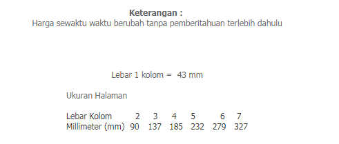 Anda dapat mengetahui harga iklan pengumuman Radar Bandung dengan cepat dan mudah dengan melihat tarif dibawah ini dan menghubungi Customer Service Iklan kami.