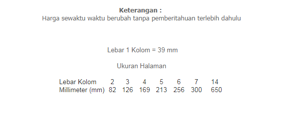 Anda dapat mengetahui harga iklan pengumuman Ujung Pandang Ekspres dengan cepat dan mudah dengan melihat tarif dibawah ini dan menghubungi Customer Service Iklan kami.